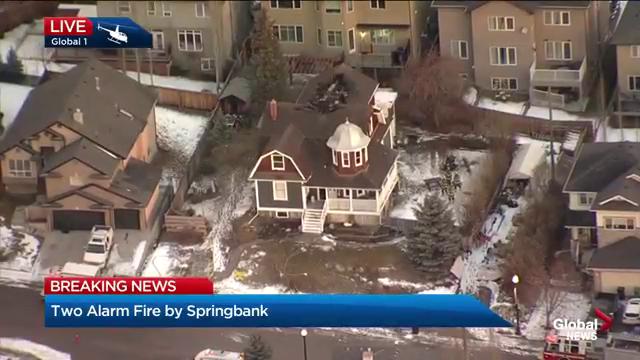 The Calgary Fire Department (CFD) battled a stubborn two-alarm house fire in the southwest community of Springbank Hill on Wednesday.