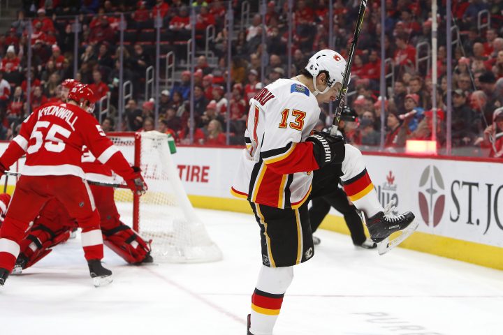 Johnny Gaudreau’s power-play goal with 10:23 left lifted the Calgary Flames to a 5-3 victory over the Detroit Red Wings on Wednesday night.
