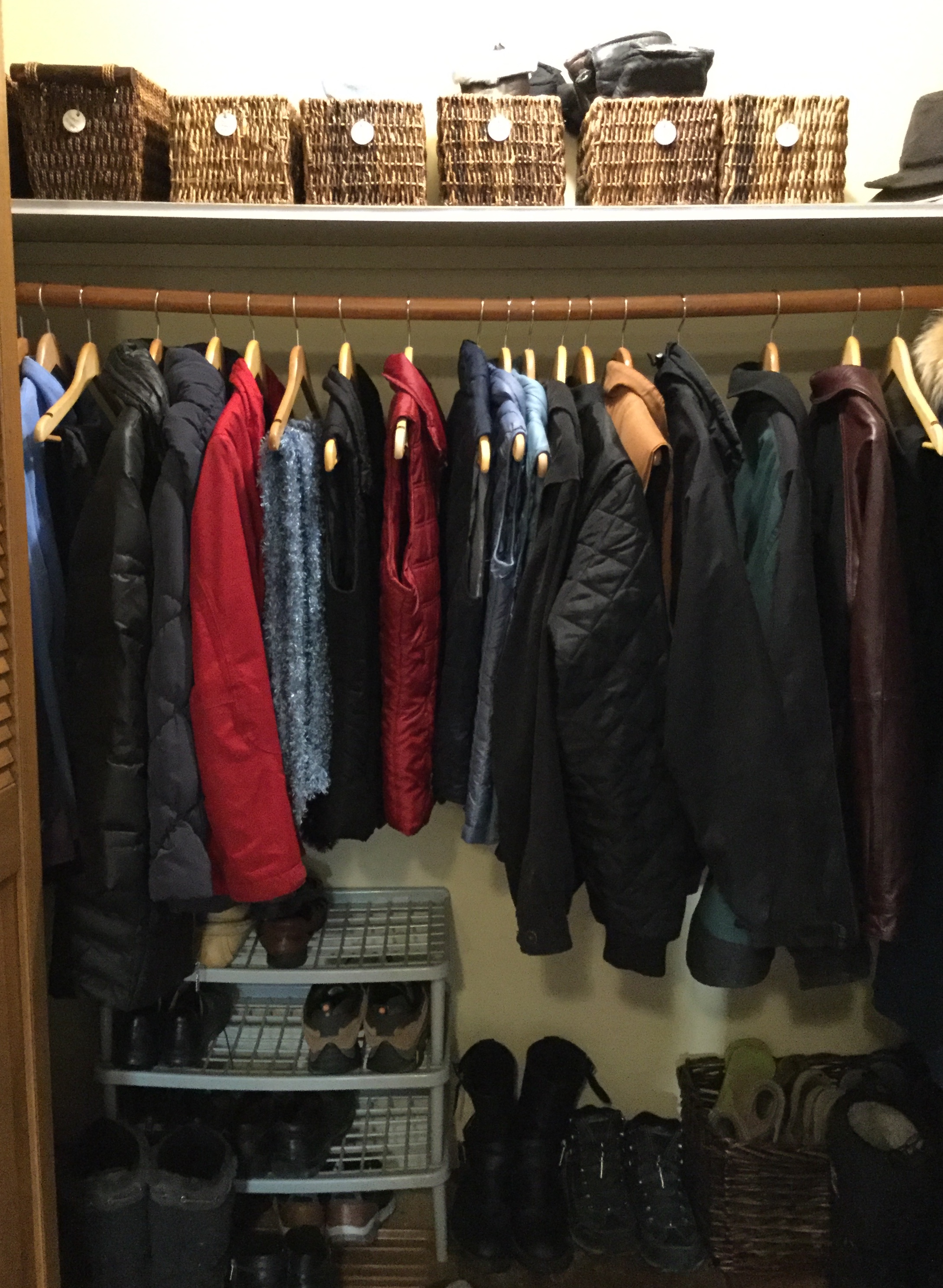 That’s a key tip when tackling the front closet that can become littered with coats, shoes and accessories.