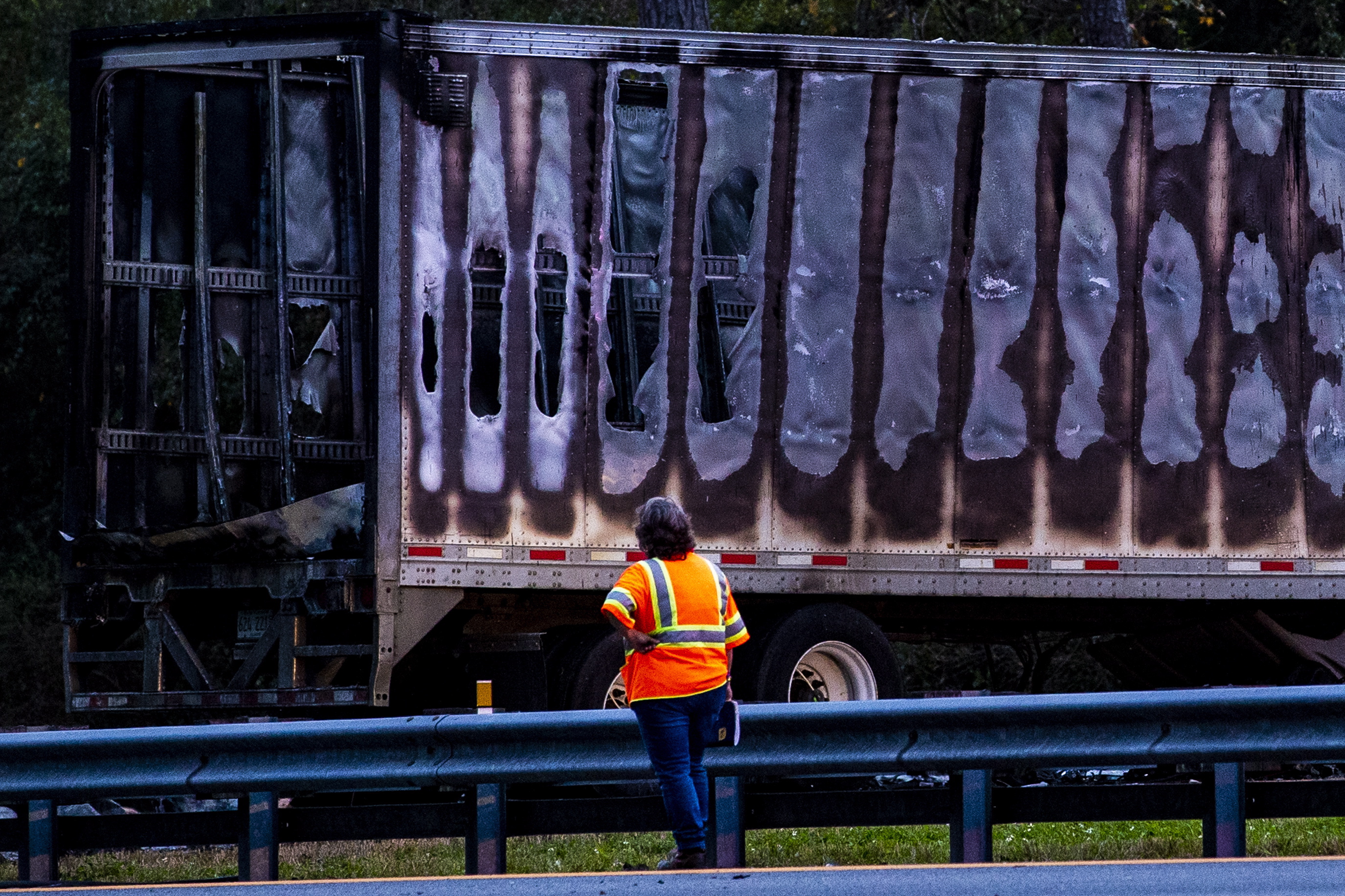 On Thursday, a big rig and a passenger vehicle collided in the northbound lanes of the highway and continued across the guardrail and into the path of another big truck and the church van, investigators said.“Once those semis struck, they both caught fire,” Riordan said.