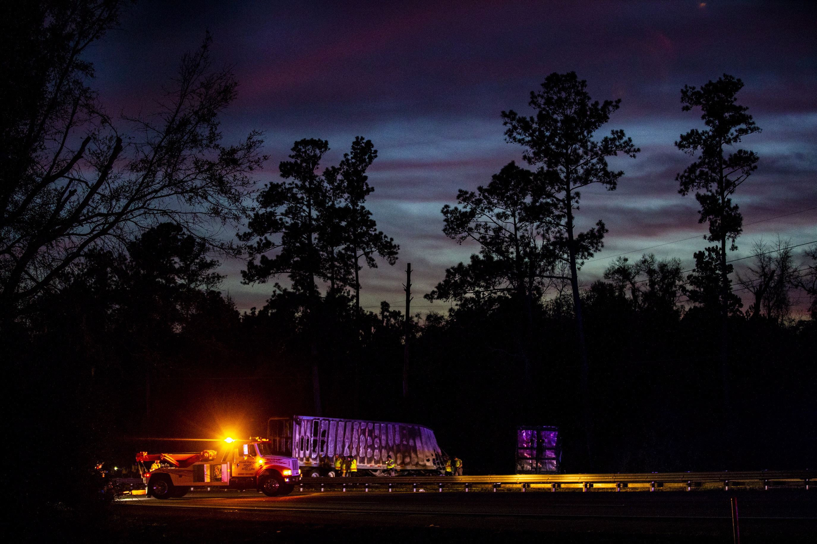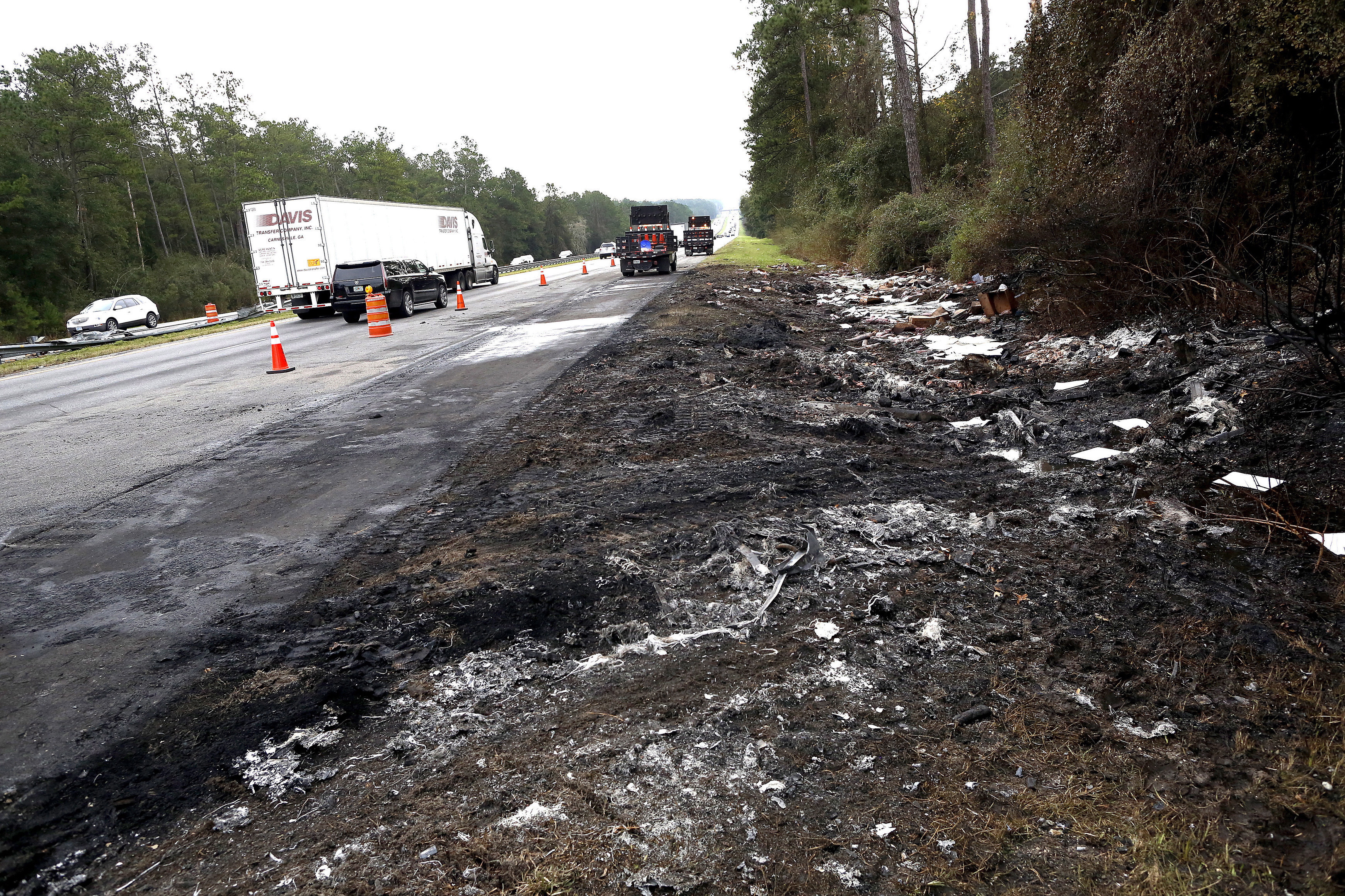 The aftermath closed part of the highway in both directions, causing massive delays along the busy north-south corridor. Authorities opened the northbound lanes around 8 p.m. but all but one southbound lane remained closed Friday morning. Debris, including personal property and vehicle parts, was scattered across the road, the Florida Highway Patrol said. A helicopter helped search for any victims who may have been in nearby woods.