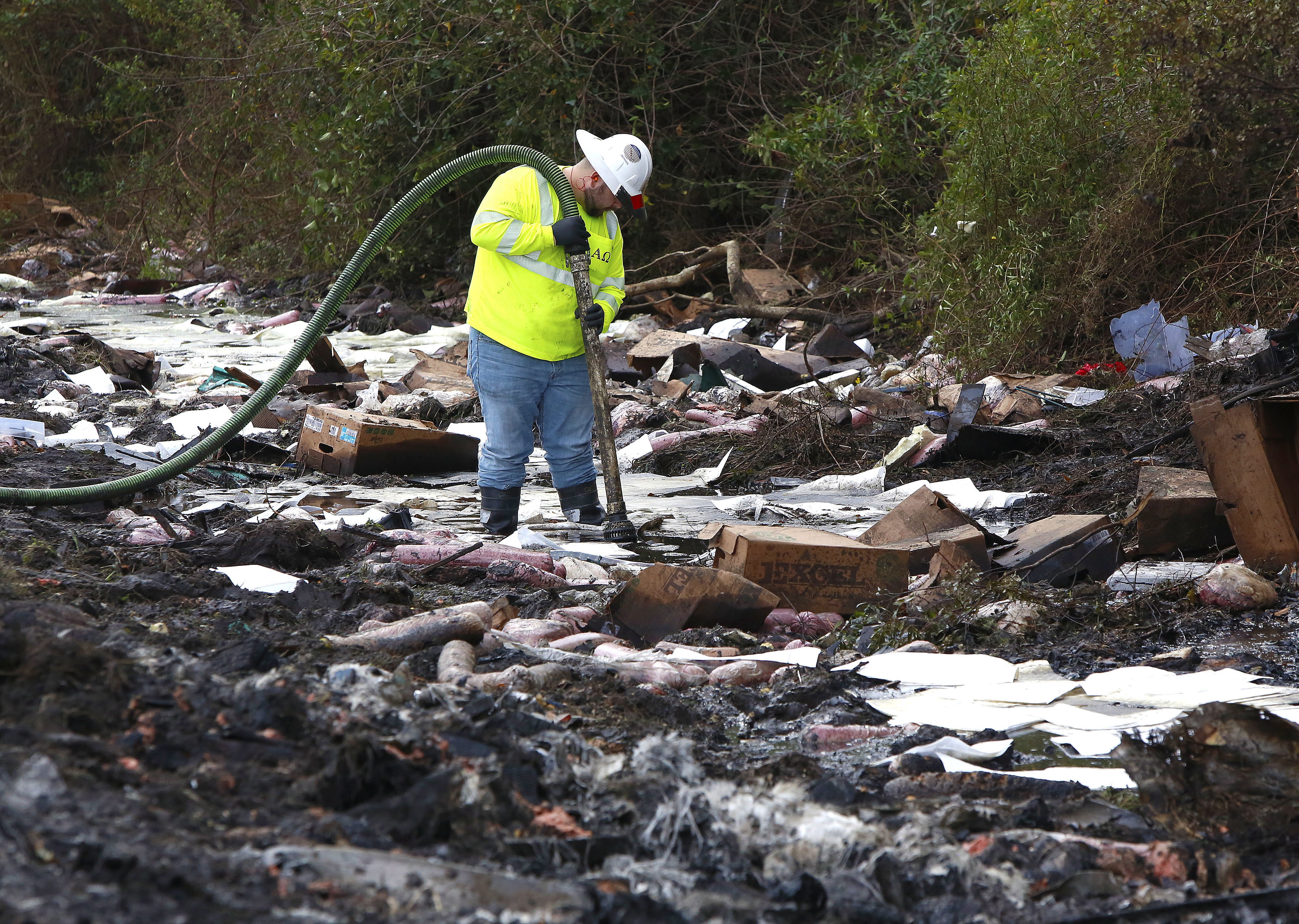 Two big rigs and two passenger vehicles collided and spilled diesel fuel across a Florida highway on Thursday, Jan. 3, 2019, sparking a massive fire that killed seven people, authorities said. Up to eight more people were taken to hospitals.