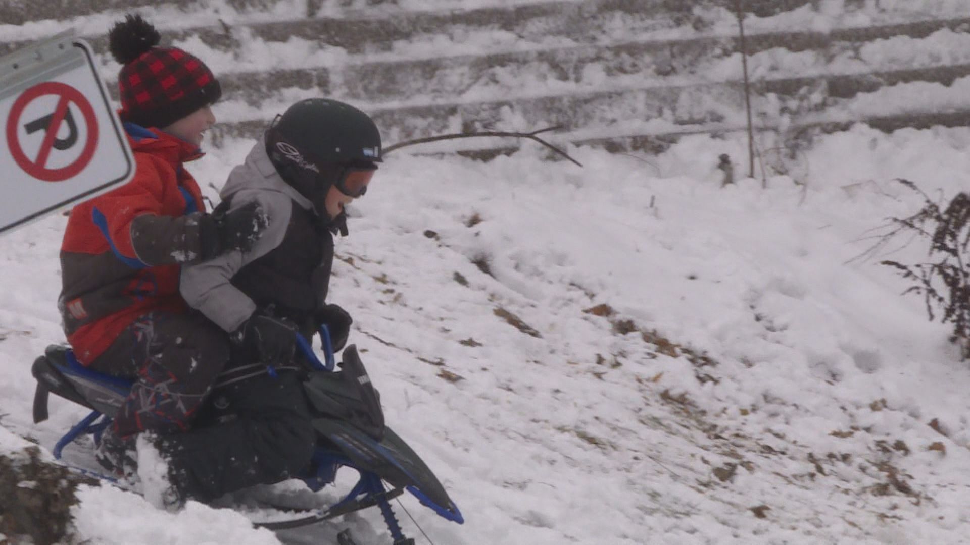 Children took full advantage of the five-centimetere snowfall that hit the Montreal region, blanketing the hill sides of the Beaconsfield Golf Course.