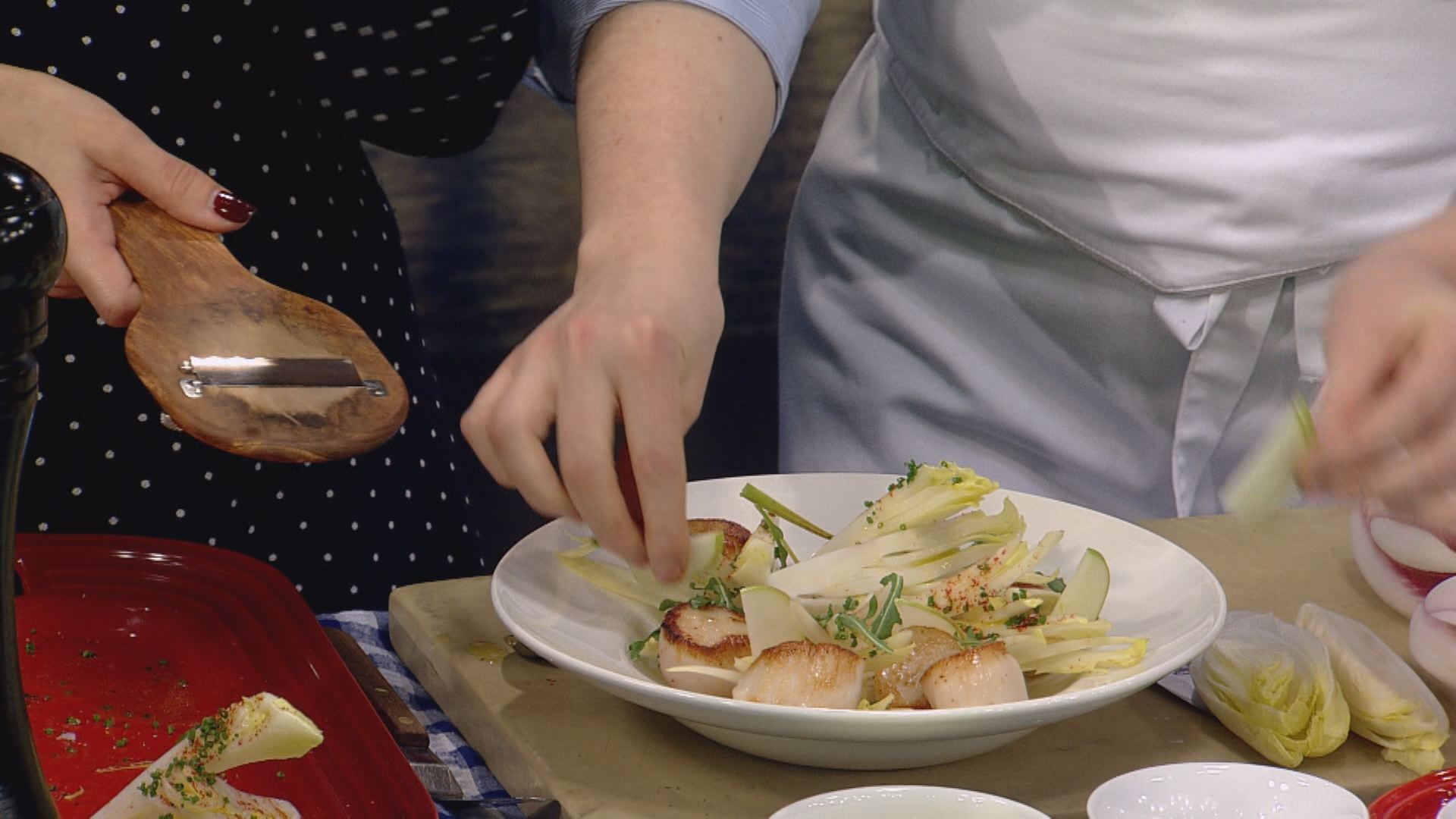 - Cut the endives into four and crisscross the leaves. Reserve underneath a moist towel on a tray or plate.
