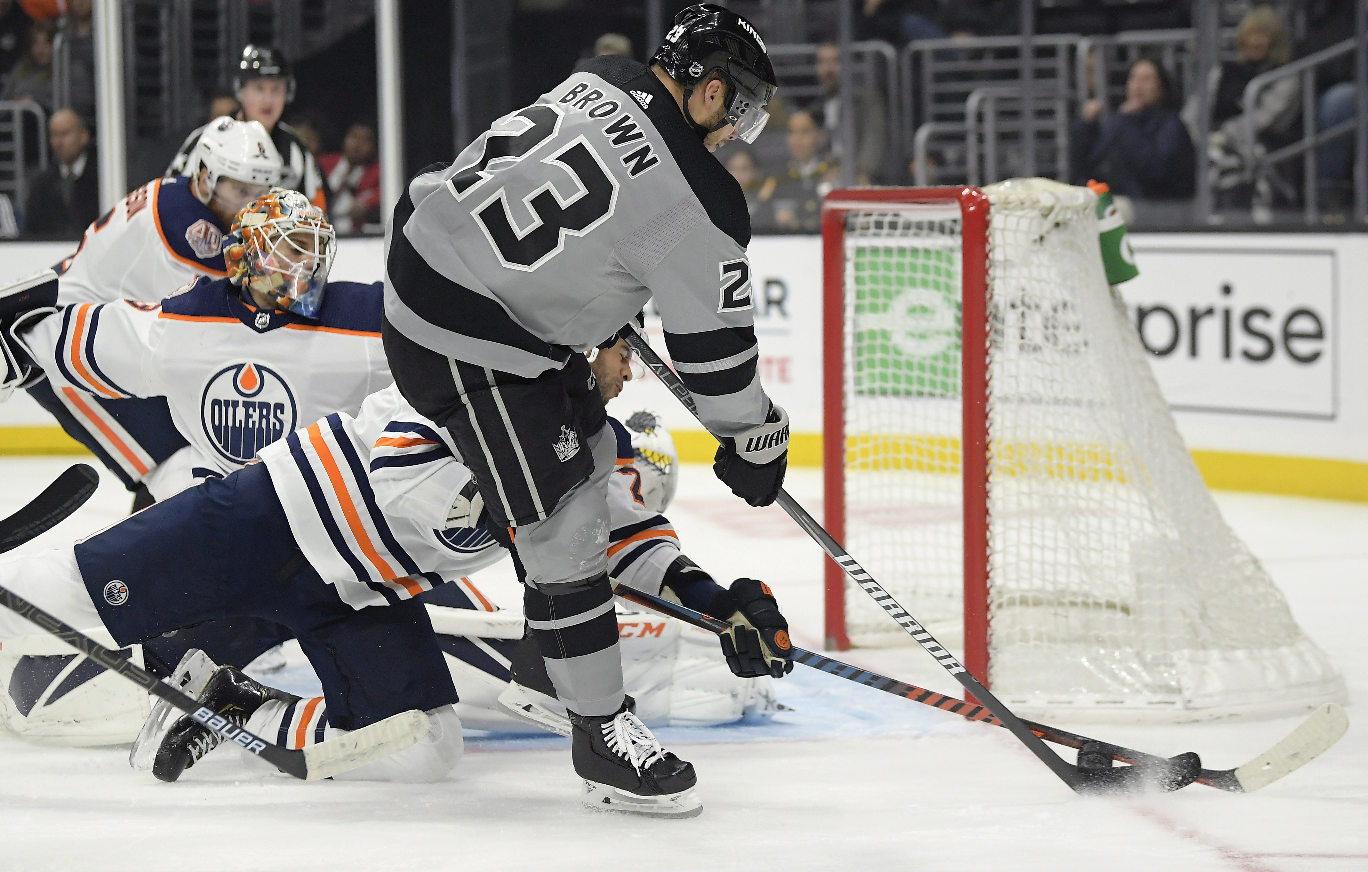 Kyle Clifford worked around Caleb Jones and beat Mikko Koskinen to open the scoring 3:15 into the game. After the Oilers failed on numerous attempts to clear the puck later, Tyler Toffoli made it 2-0. Then, Jeff Carter sniped on a two-on-one to make it 3-0. Koskinen was pulled after allowing three goals on eight shots. The Oilers managed only three shots in the first period.