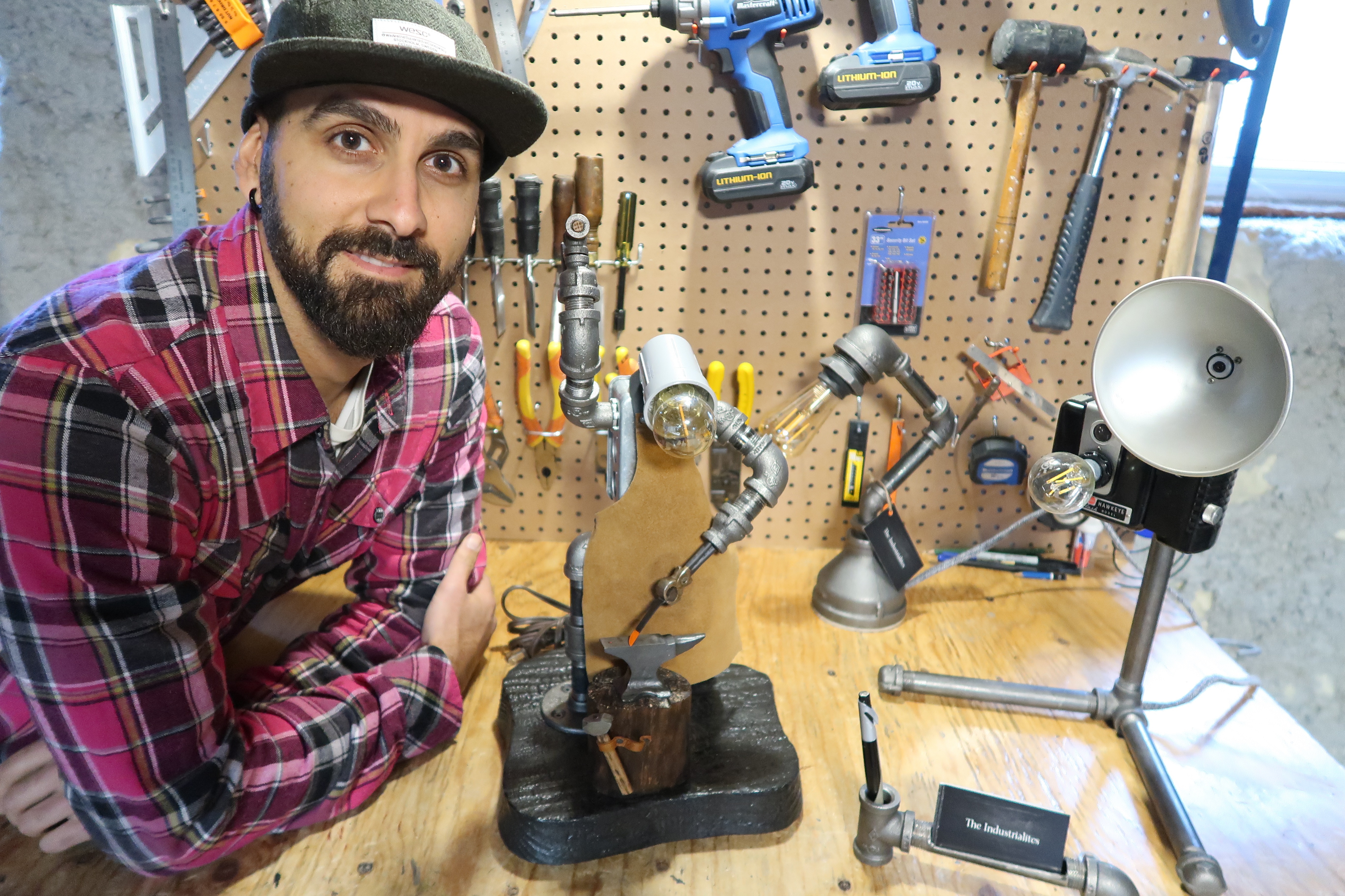 With plumbing pipes hanging overhead in his basement workshop, Sathe Zarei is turning another kind of cold, industrial gas piping into works of art with a personality.