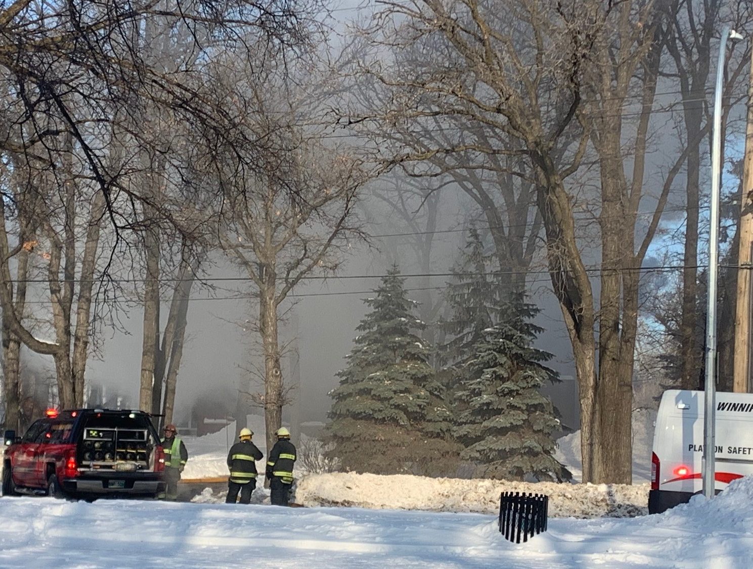 Two Winnipeg firefighters suffered minor injuries and two family pets were killed Wednesday as the Winnipeg Fire Paramedic Service tackled a smoky situation on Wellington Crescent.