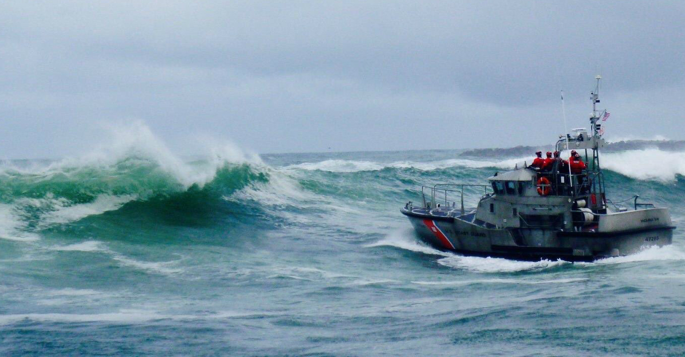 A bar is an area near the coast where a river – in this case the Yaquina River – meets the sea. The force of the river water colliding with the ocean can create hazardous currents and swells, particularly during a storm. The Yaquina Bay bar is considered one of the more dangerous ones along the Oregon coast. On Wednesday, reports showed waves 16 feet (nearly 5 metres) tall there.