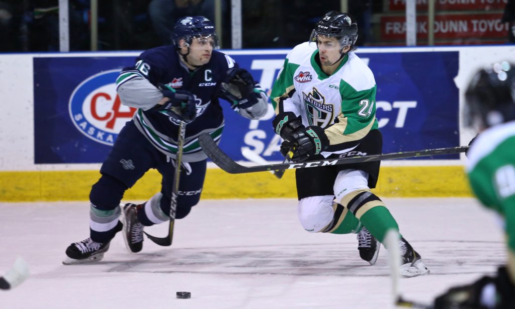 Jaxan Kaluski has his first career WHL hat trick as the Seattle Thunderbirds downed the Prince Albert Raiders 4-1 on Wednesday in Western Hockey League (WHL) action.