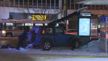 A 24-year-old man was driving east on Sherbrooke around 5:40 p.m. when he lost control and struck two pedestrians on a sidewalk before crashing into a street light, according to police.