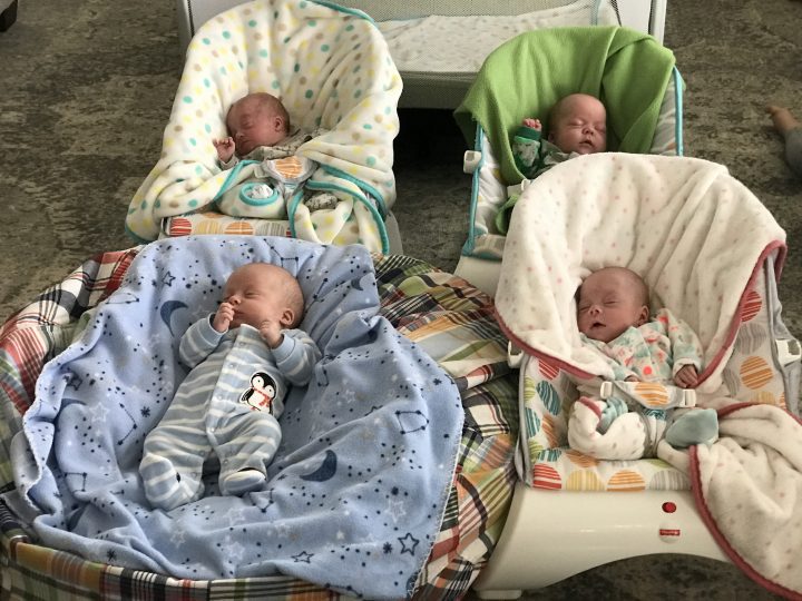 On Oct. 30, 2018, Carter, Nathan, Heidi, and Julia were born at the Foothills Medical Centre in Calgary, ranging in weight from one pound and three ounces to three pounds and four ounces.