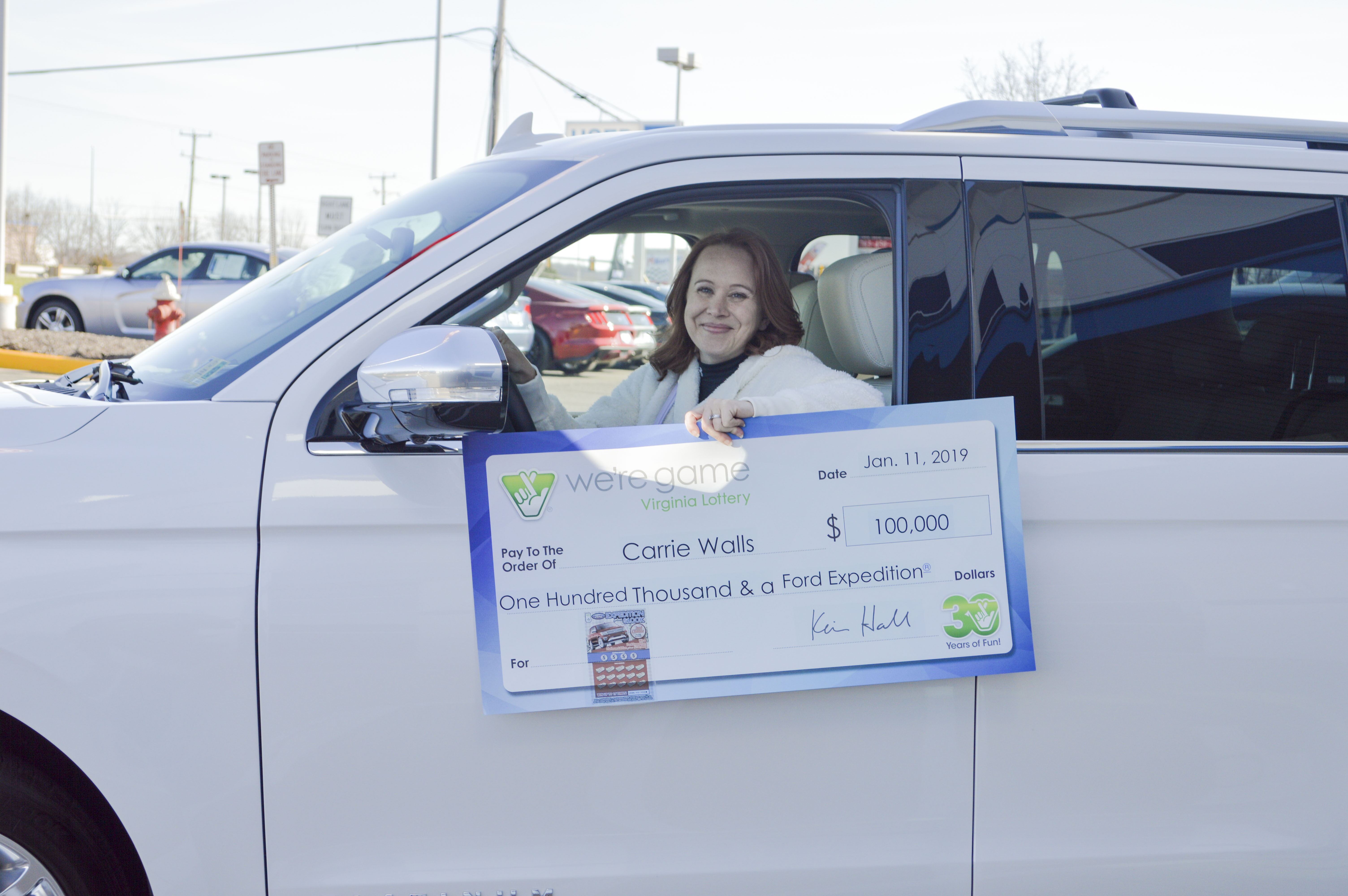 A few days after Carrie Walls’ husband missed his first pay cheque due to the longest partial government shutdown in U.S. history, she discovered she’d won USD$100K in the Virginia Lottery’s ‘Ford’s Expedition Plus $100K,’ scratch-off contest.