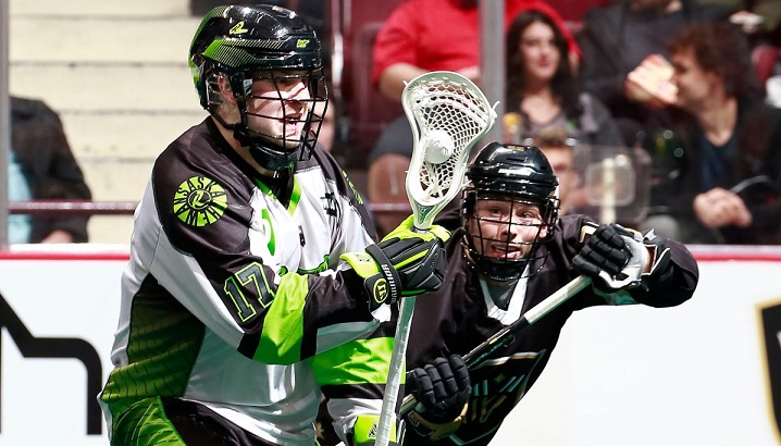 Ben McIntosh scored five goals and added three assists as the Saskatchewan Rush (2-1) topped the Vancouver Warriors (1-4) in a 14-10 victory in National Lacrosse League action Saturday.