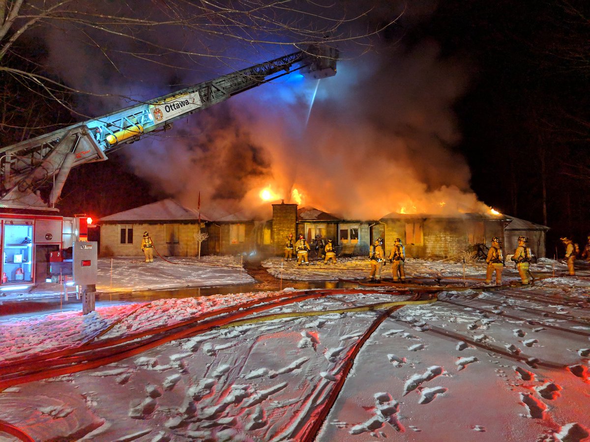 Firefighters were slightly delayed in fighting the blaze as water had to brought in from elsewhere because there are no hydrants on Cedar Drive. Water from the Rideau River was gathered from the docks at nearby Kars and brought to the blaze.