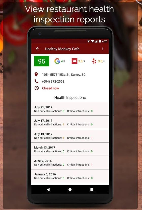 The Tomati app provides public data on health inspection reports for food establishments that are pulled from health authority websites. The restaurants are then given a score based on the reports.