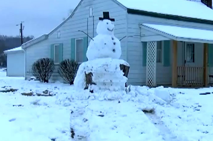 Cody Lutz and his family decided to have some fun after a recent snowfall in Petersburg, making a very large snowman in their front yard.