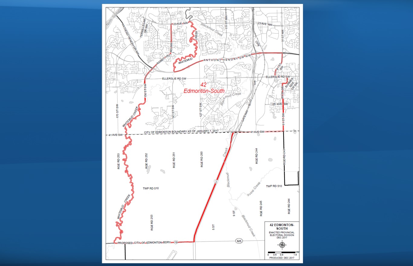 This is a new riding as a result of boundary changes, made up of areas previously part of Edmonton-South West and smaller parts of Edmonton-Whitemud, Edmonton-Ellerslie and Leduc-Beaumont.