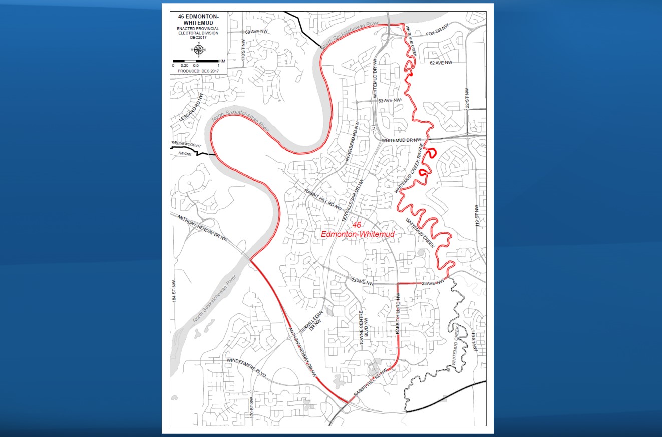 Below is a full list of candidates in the riding of Edmonton-Whitemud, which includes the Riverbend and Terwillegar areas. It is bordered by the North Saskatchewan River along the north and western edge of the riding, Whitemud Creek and Rabbit Hill Road on the east side and Anthony Henday Drive in the south.