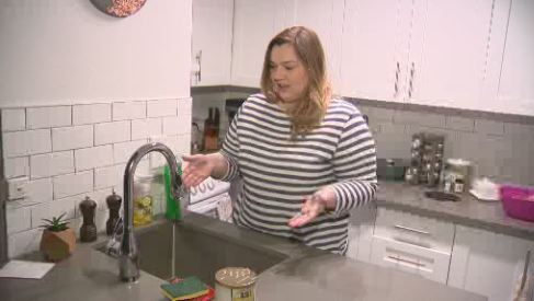 Nearby, the kitchen faucet wasn’t working either. Global News observed the water in her bathroom tub was not draining.