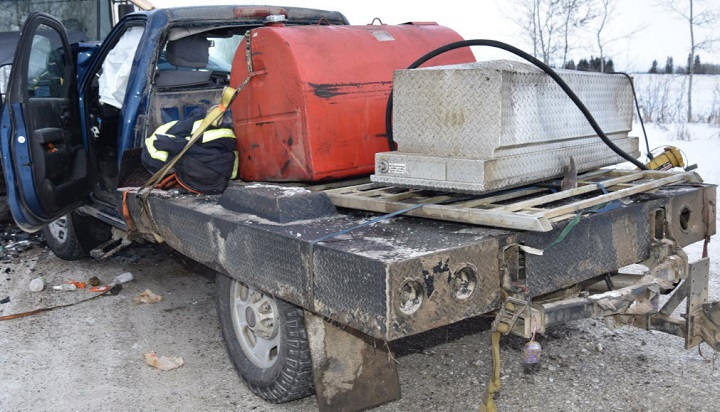 On Tuesday afternoon, police said the truck involved in the collision had been stolen last week from a Fountain Tire in Drumheller, Alta.