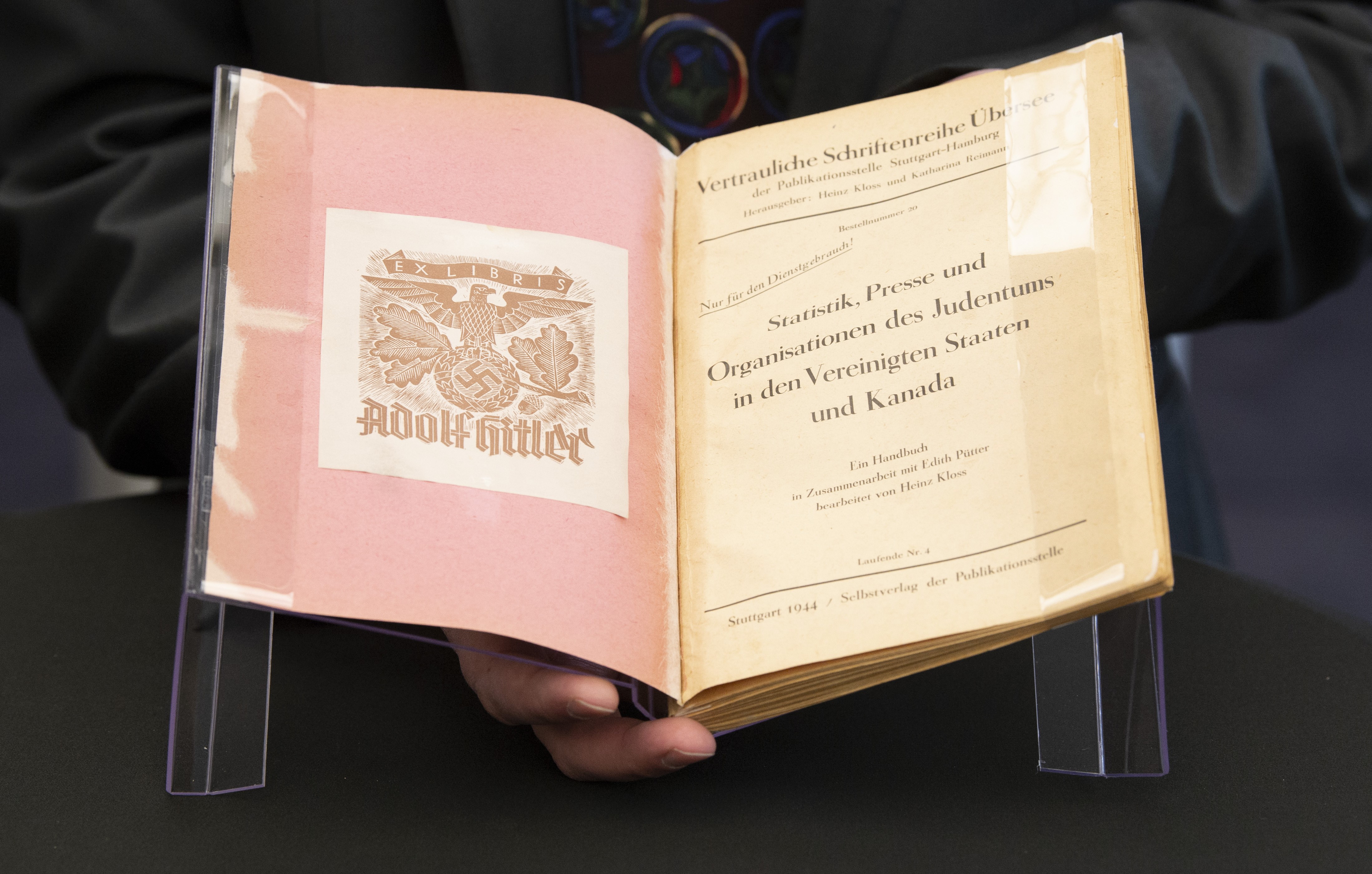 Once part of Adolf Hitler’s personal library, the 1944 volume reports on the Jewish population of various cities as well as key organizations and newspapers serving Canadian and American Jewish communities.