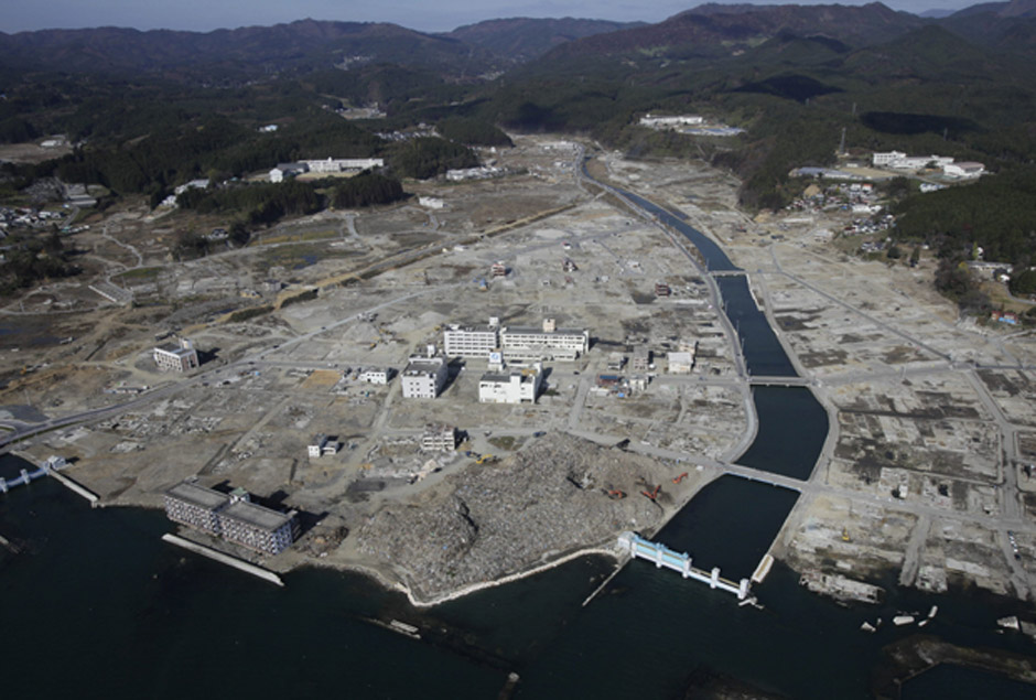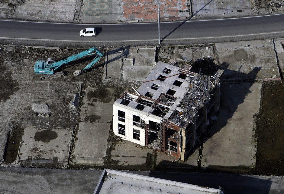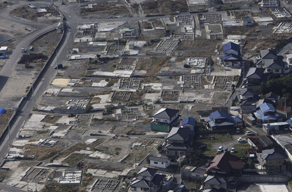 An aerial view of tsunami-battered seaside communities shows striking progress eight months after Japan’s March 11 disaster. Much of the rubble, crumpled cars and other debris are gone. Yet seen from a helicopter Friday carrying Associated Press journalists, there were few signs of rebuilding along the rocky coastline.
