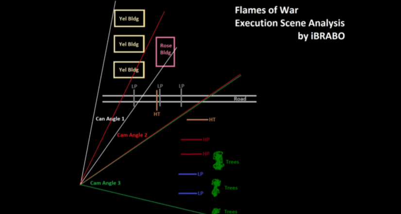 Using historical satellite imagery, the researchers then mapped out the landmarks from the different camera angles shown in the video. Their conclusion was that the killings took place at a semi-circular berm, one of several defensive positions that surrounded the 17th Division base.