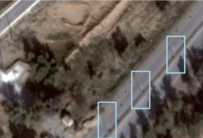The executions depicted in the video took place near the Syrian Army’s 17th Division base, which was captured by ISIS in the summer of 2014. To find where the bodies may be buried, iBrabo analyzed the video frame-by-frame, noting the buildings, lamp posts, hydro towers, terrain and vegetation in the background.
