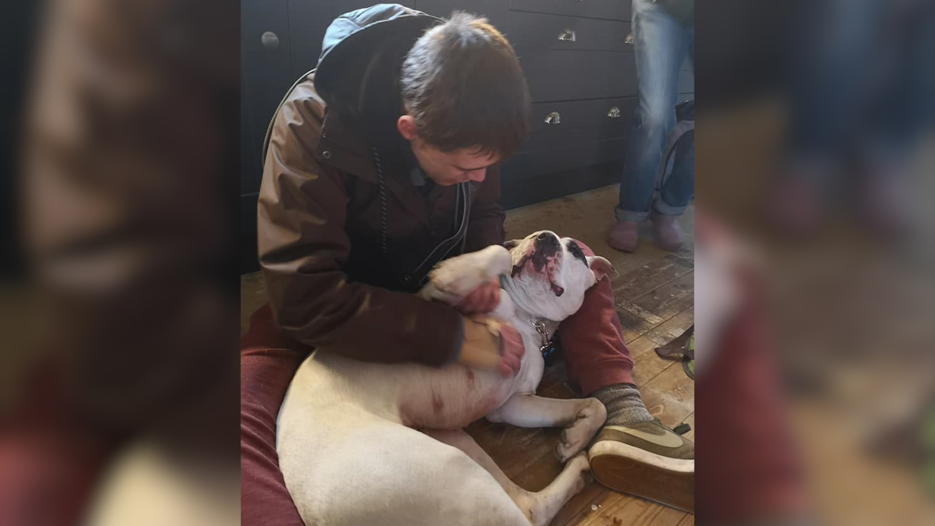 According to the charity, Crystal is a white-coated Staffordshire Bull Terrier and Boxer cross and she is full of love for her owner, as seen in the video.