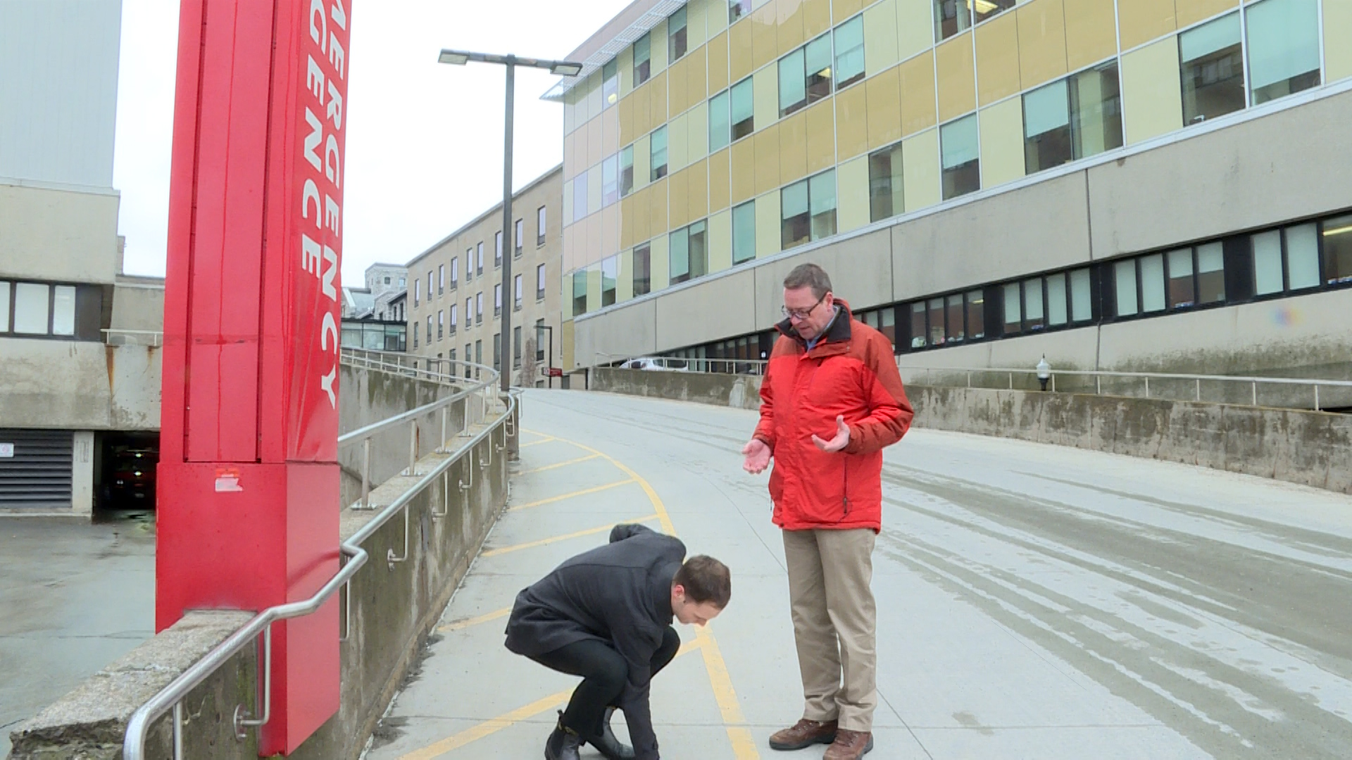 The KGH emergency ramp that faces Lake Ontario is heated with pipes which are pumped with warm anti-freeze, snaked throughout the concrete.