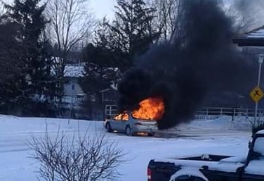 Emergency crews responded to the scene along Culver Drive to extinguish a vehicle fire at around 10 a.m. Police said an eastbound vehicle caught after colliding into the front of a westbound city bus. The vehicle was later seen fully engulfed in flames.