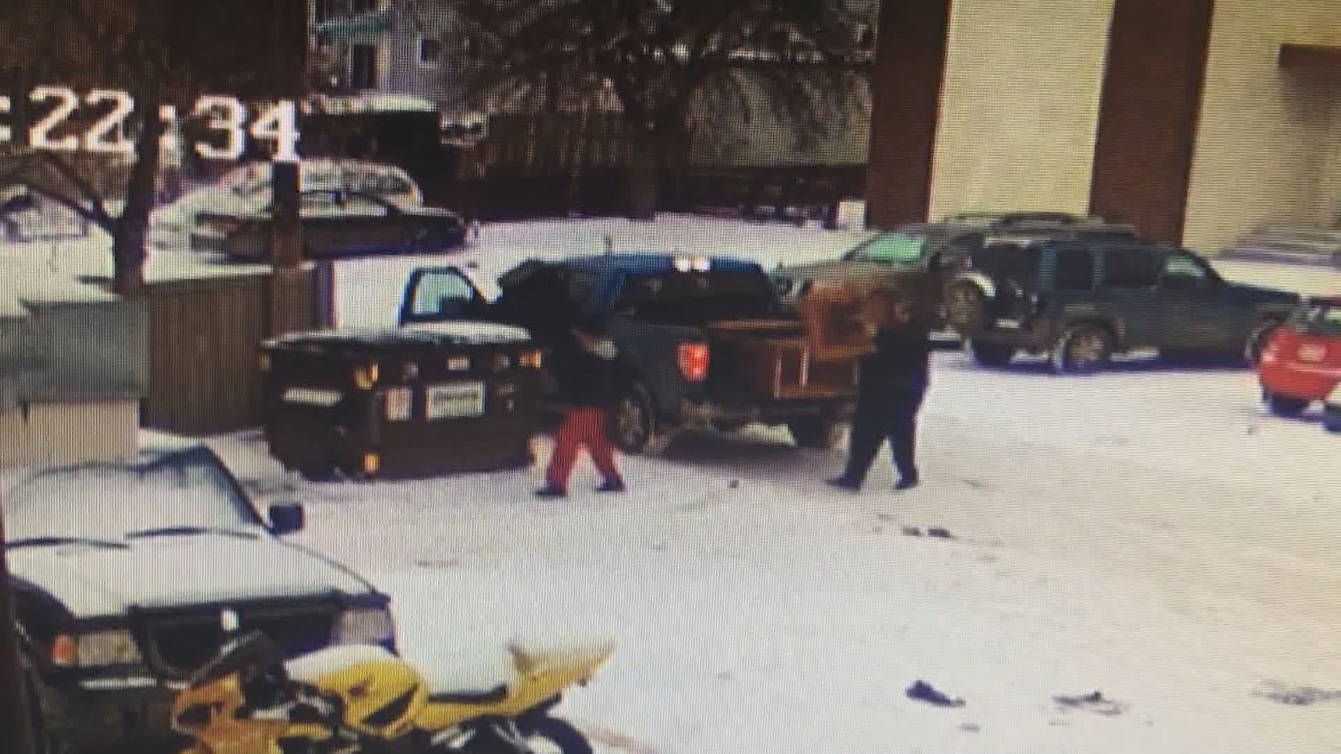 On Saturday, Jan. 19 in the late afternoon, a blue pickup truck can be seen pulling up to the dumpster behind his building. Two people unload what appear to be several pieces of furniture before driving off within minutes.