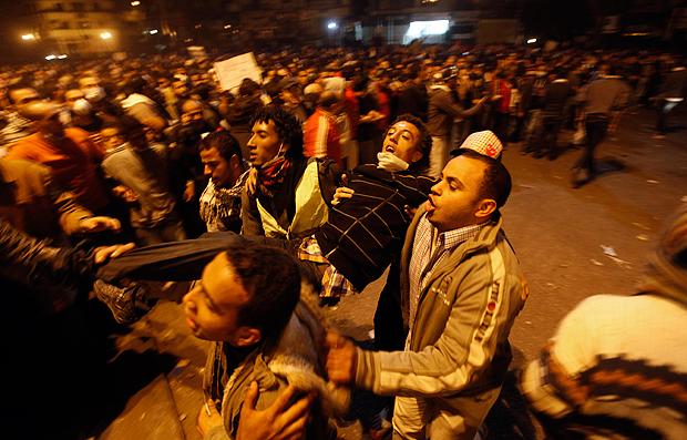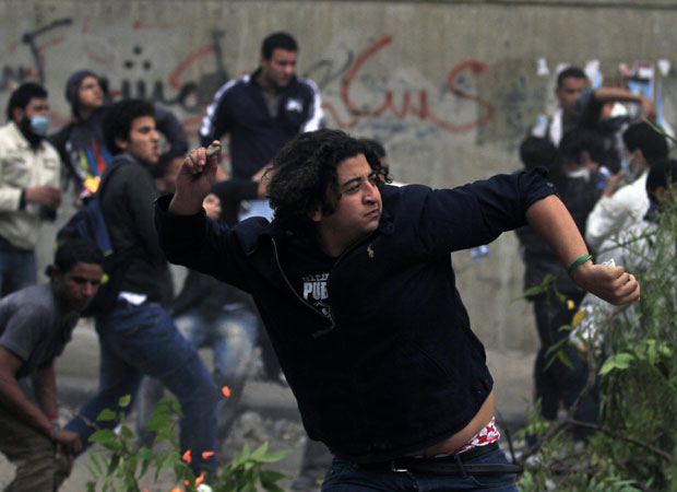 Updated Monday November 21, 2011: Security forces fired tear gas and clashed with several thousand protesters in Cairo’s Tahrir Square today in the third straight day of violence that has killed at least 24 people and has turned into the most sustained challenge yet to the rule of Egypt’s military. Throughout the day, young activists demanding the military hand over power to a civilian government clashed with black-clad police, hurling stones and firebombs and throwing back the tear gas canisters being fired by police into the square.