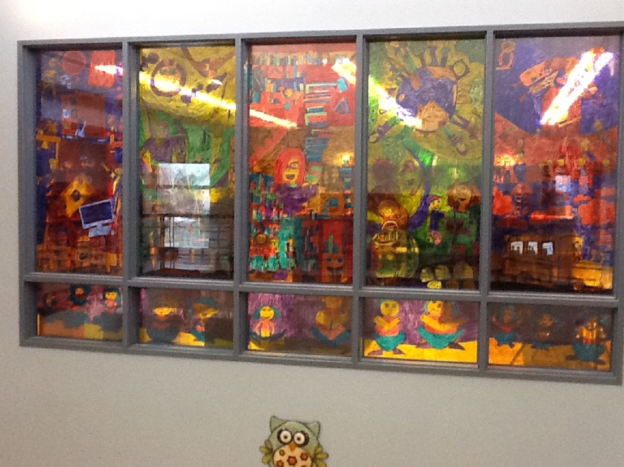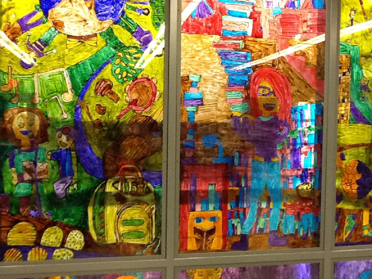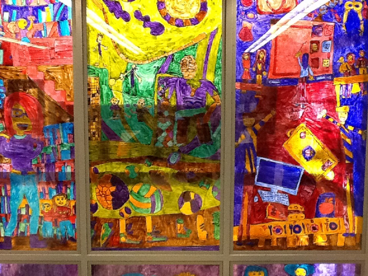 She came up with the idea for the stained glass windows when she first saw the space in the mezzanine area of the school.