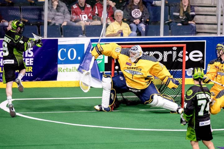 Georgia’s quick start put the Rush in a deep early hole. The Swarm grabbed a 5-0 lead just over seven minutes in and Saskatchewan goalie Evan Kirk was pulled in favour of Adam Shute.