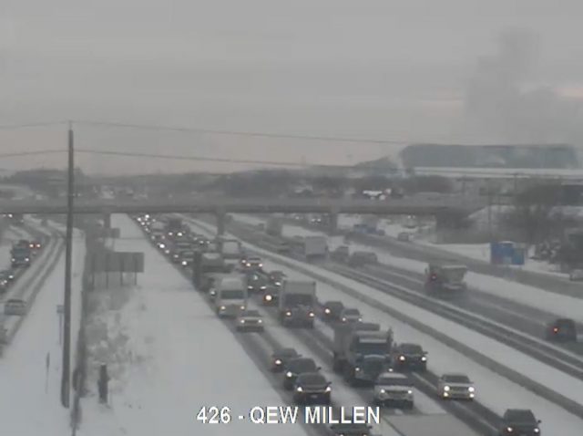 Upwards of 5 to 10 cm of lake effect snow fell Monday morning between Hamilton and Mississauga, and an Alberta Clipper will come through the region Monday afternoon and evening.