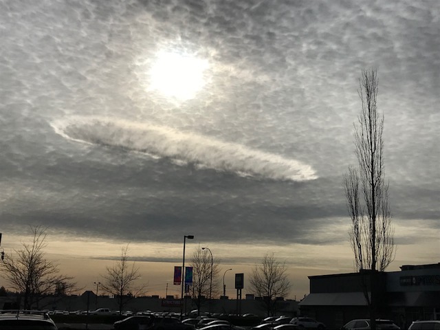 Notice some of the fallstreak holes are elongated as if a plane travelled in the cloud layer for a distance.