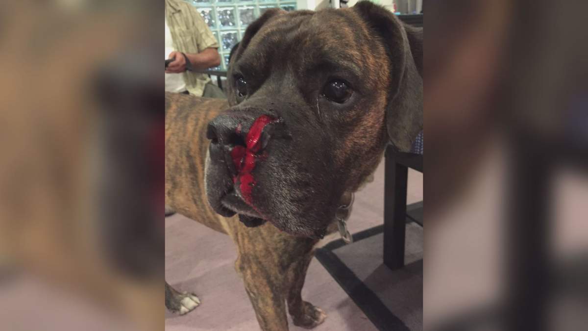 Crown prosecutor Alanna Hall said the dog was stabbed so severely that the wound went through his nose and snout and through to his teeth.