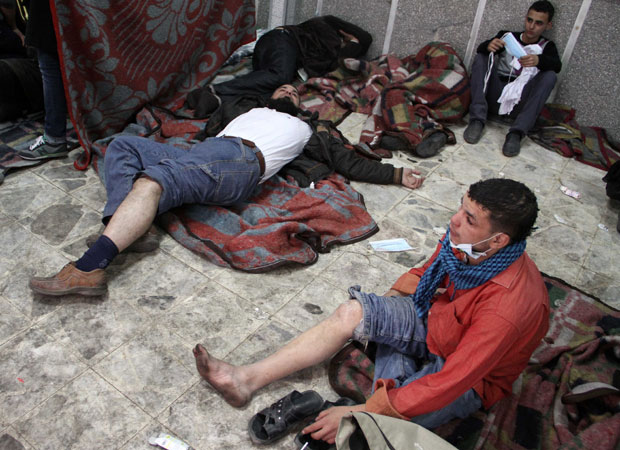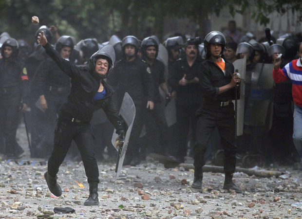 Updated Monday November 21, 2011: Security forces fired tear gas and clashed with several thousand protesters in Cairo’s Tahrir Square today in the third straight day of violence that has killed at least 24 people and has turned into the most sustained challenge yet to the rule of Egypt’s military. Throughout the day, young activists demanding the military hand over power to a civilian government clashed with black-clad police, hurling stones and firebombs and throwing back the tear gas canisters being fired by police into the square.