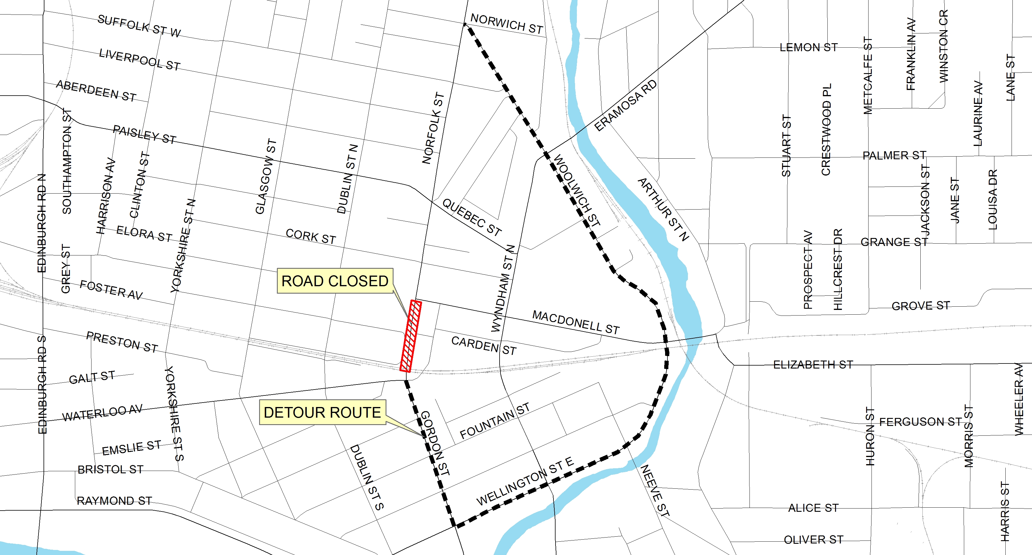 Beginning Monday, Norfolk Street will be closed between Waterloo Avenue and Macdonell Street until at least Feb. 18, the city said in a news release.
