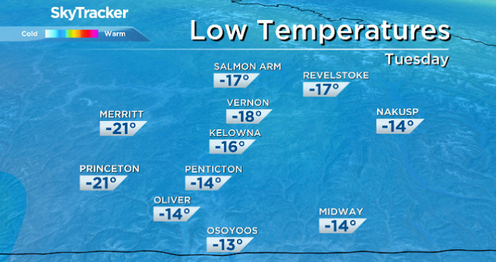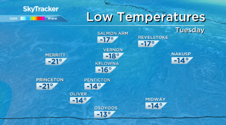 The final day of the month kicked off under cloudy skies around -1, with a breezy southeasterly wind making it feel like -6 with wind chill in the Central Okanagan.