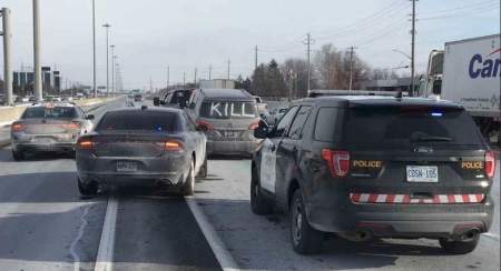 OPP stopped the vehicle in a high risk takedown near Appleby Line Wednesday after several motorists reported seeing a van with the word “KILL” spray-painted in large white letters on the back window.