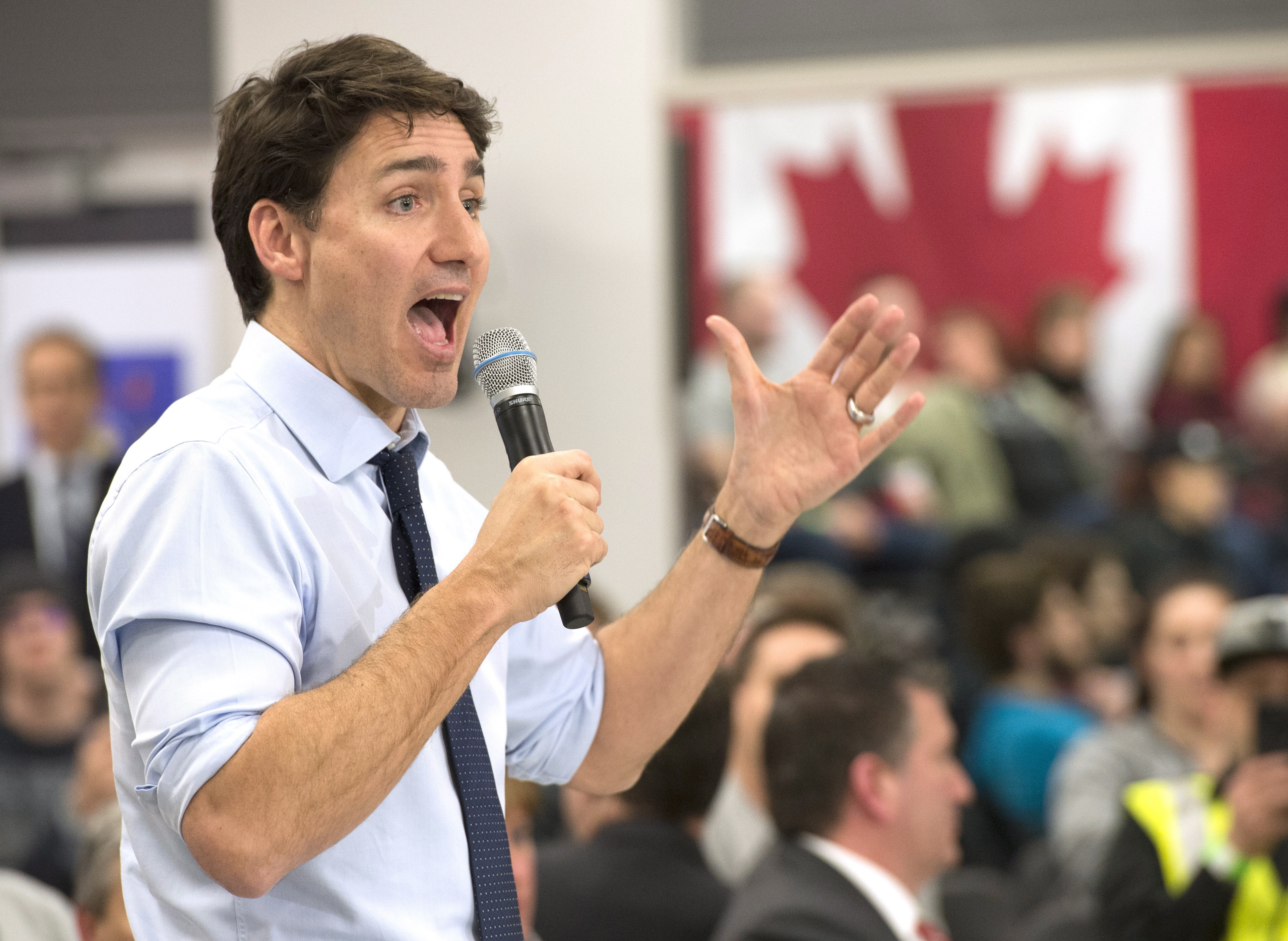 Trudeau took questions from a crowd in the high school’s gymnasium while others watched from an overflow room nearby. Trudeau’s office said approximately 1,300 people attended the 90-minute event, which was the latest in a series of question-and-answer sessions held across the country.