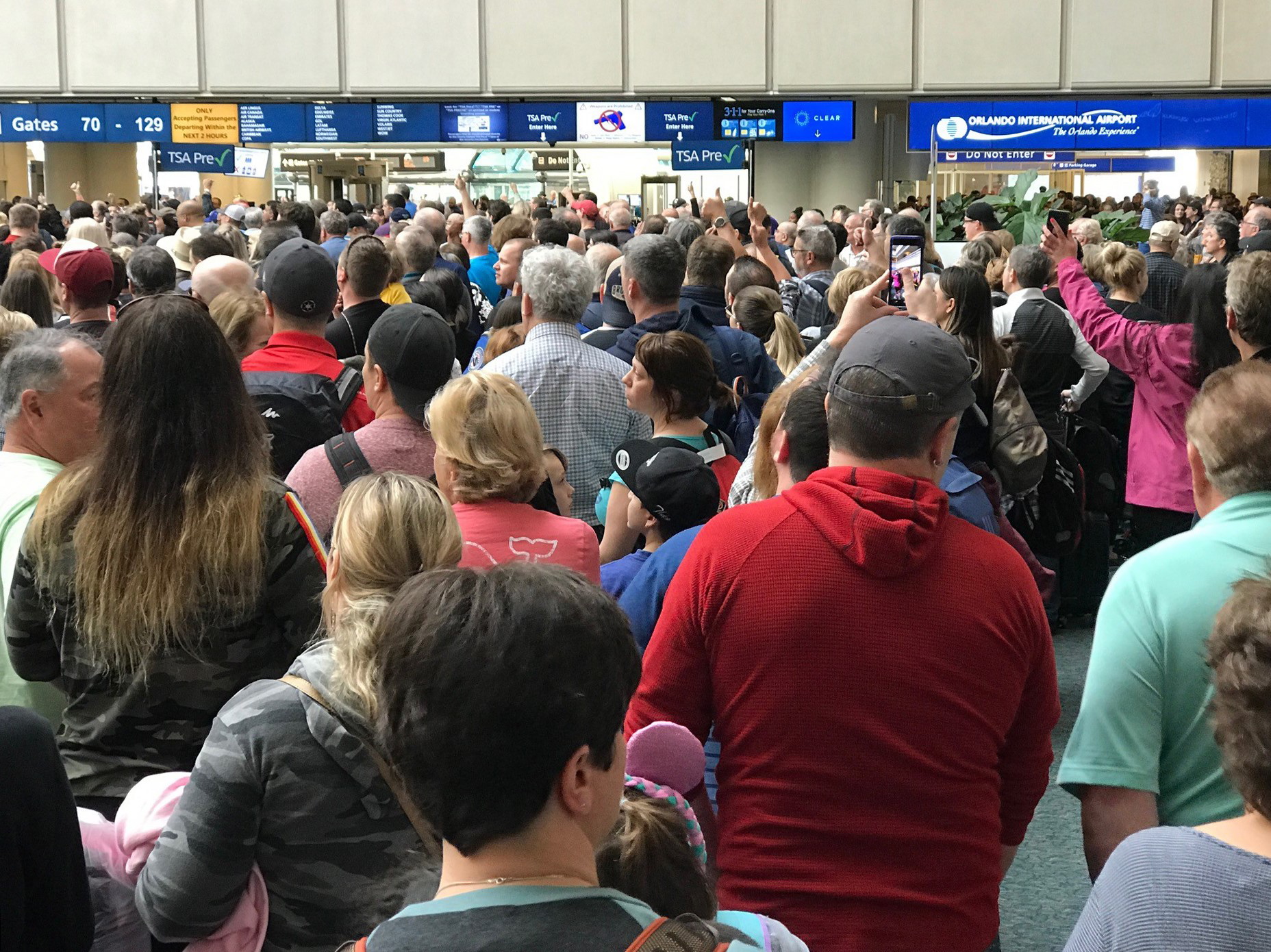 Panicked passengers rushed past checkpoints leading to about half of the gates at Orlando International Airport after the man jumped, resulting in checkpoint closures for up to three hours and some flight cancellations.