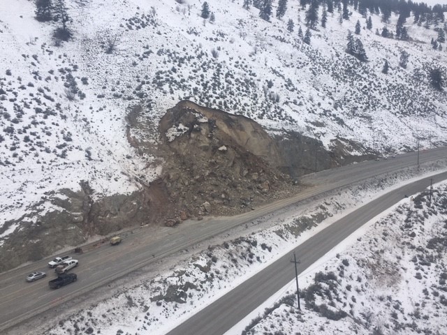 The rockslides on that stretch of Highway 97 started on Thursday night, when the Ministry of Transportation and Infrastructure said 400 cubic metres of large rock and debris came down onto the highway between Summerland and Peachland, partially blocking the road.
