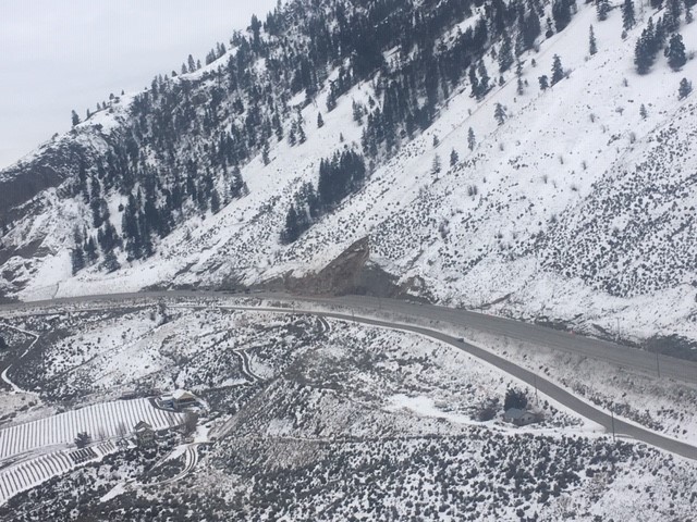 A rockslide partially covered the highway near Summerland at 5:30 a.m. The highway was still open to traffic, with one lane operating in each direction.