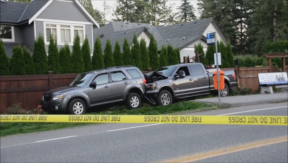 Langley RCMP said the collision appears to have been the result of a car chase that occurred after someone allegedly stole a set of tools from a construction site.