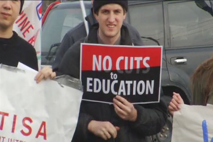 A 10 per-cent cut to post-secondary tuition sounds good for students on paper but for the majority of students protesting outside Peterborough-Kawartha MPP Dave Smith’s constituency office on Monday, they say the Conservative governments’ decision to lower tuition fees is actually making education more expensive for lower-income students.