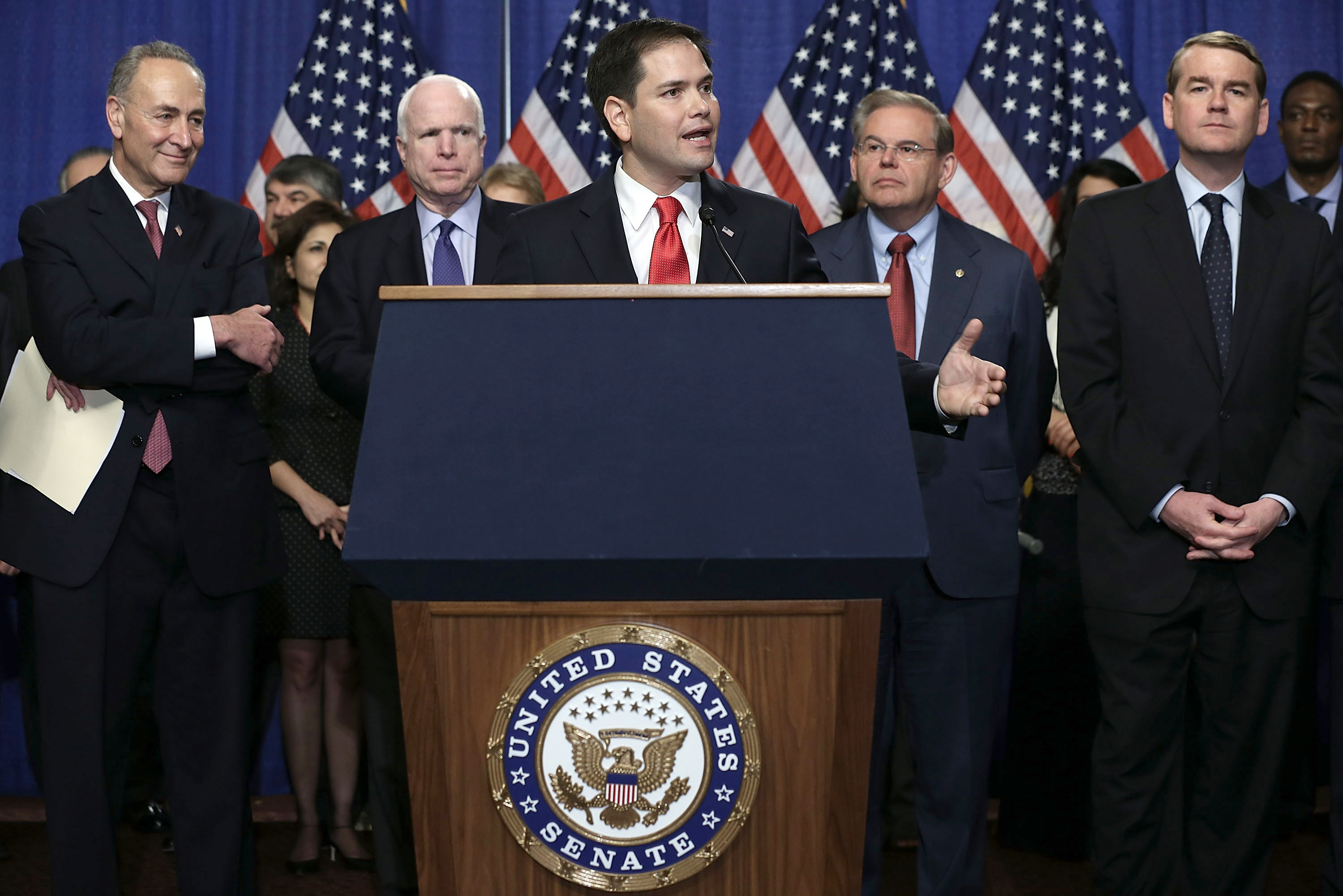 In addition to Schumer and McCain, the members of the so-called Gang of Eight are: Democrats Dick Durbin of Illinois, Robert Menendez of New Jersey and Michael Bennet of Colorado, along with Republicans Marco Rubio of Florida, Lindsey Graham of South Carolina and Jeff Flake of Arizona.