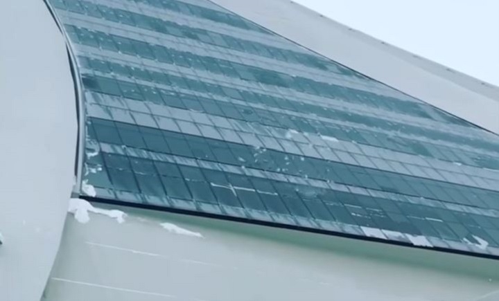 The ice breaks apart as it falls; Cédric Essiminy, spokesperson for the Olympic Stadium Park, insists it doesn’t pose a threat to passersby.